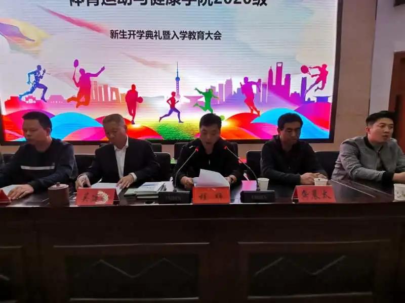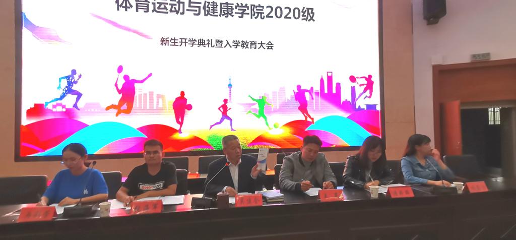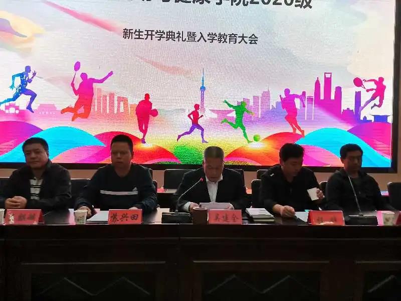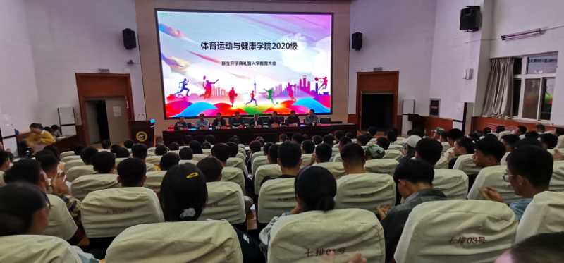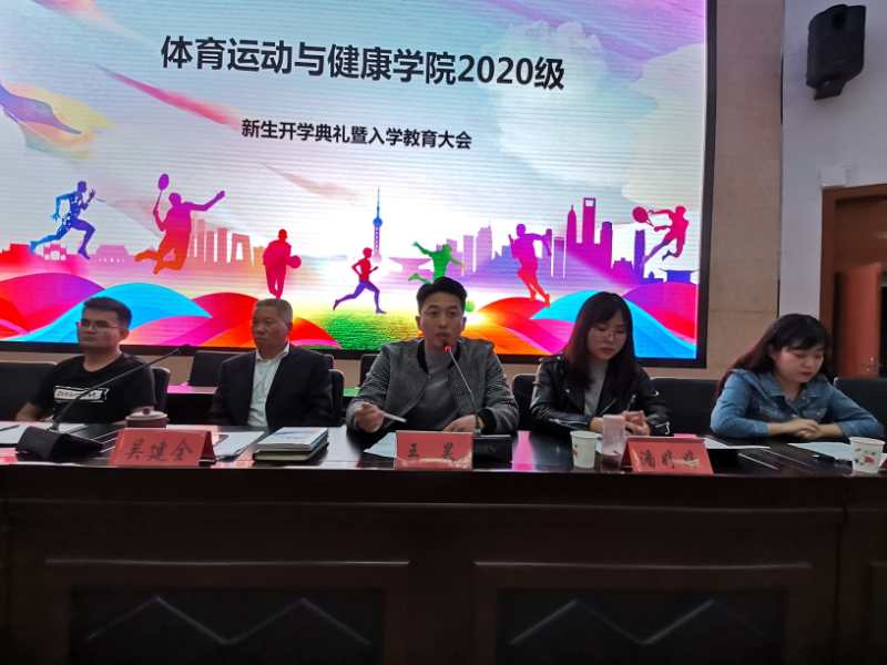 春华秋实,桂果飘香。为欢迎来自甘肃、广东、天津等19个省市(自治区)的215名新同学加入体育学院大家庭,9月23日晚在二号报告厅隆重举行2020级新生开学典礼暨入学教育大会。学院党总支副书记吴建全,副院长程晖,副院长苏兴田,运动训练系系主任王麒麟,社会体育指导与管理系系主任龚晨太,体育教育系系主任高海利,学院团委书记王昊,办公室副主任马慧琼,2020级各班班主任,教师代表段文义,辅导员以及2020级全体学生参加,典礼由学院党总支副书记吴建全主持。