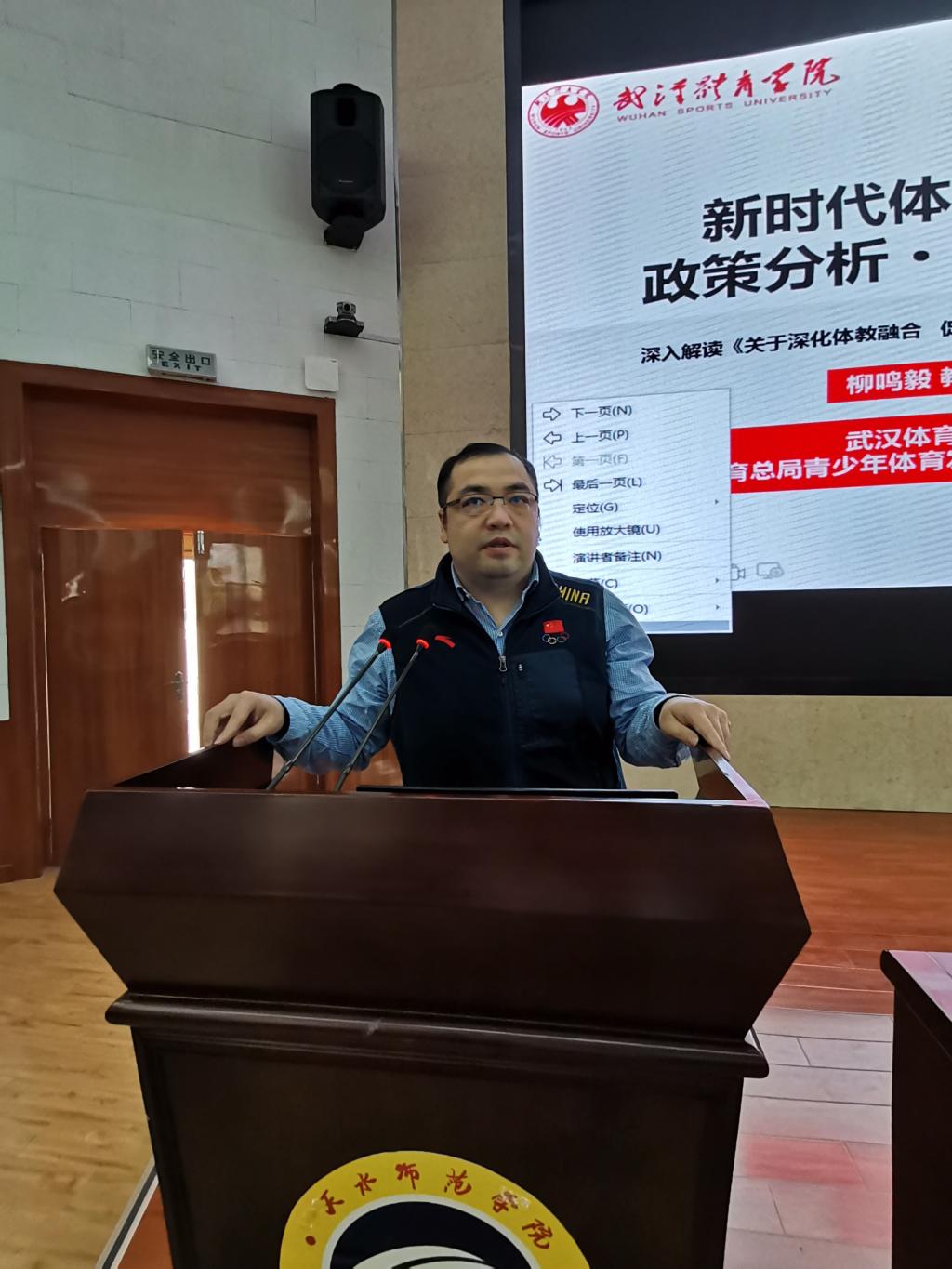11月2日,在2号报告厅,今年会成功邀请到武汉体育学院柳鸣毅教授作了《新时代体教融合政策分析·创新发展》的学术报告。