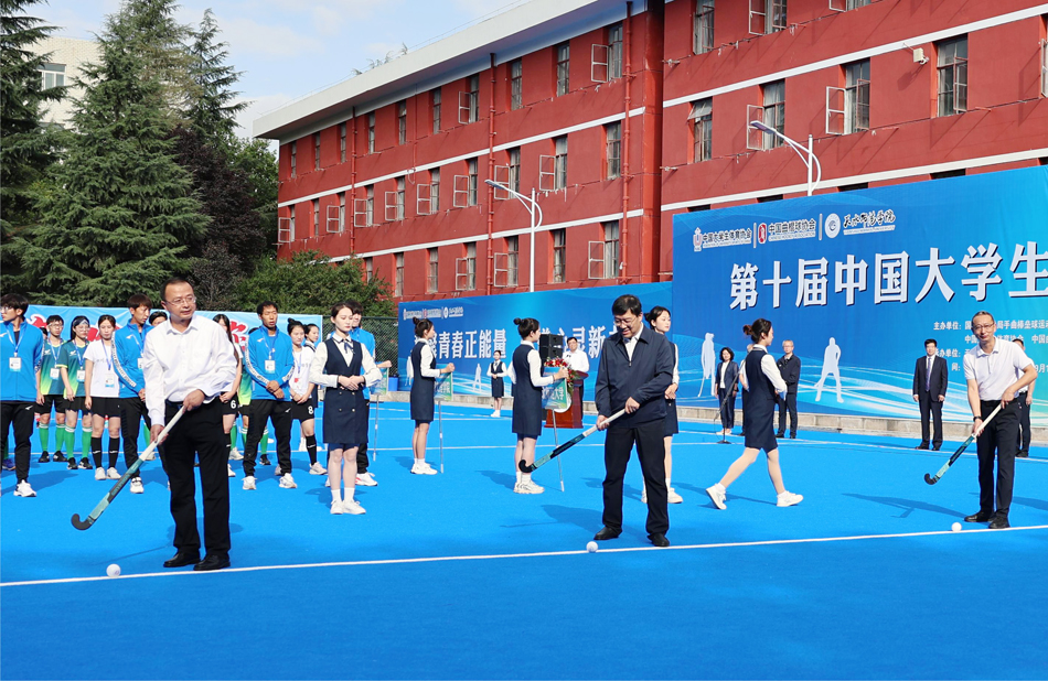 王向晨、董小平、刘振奎共同为第十届中国大学生曲棍球锦标赛开球。