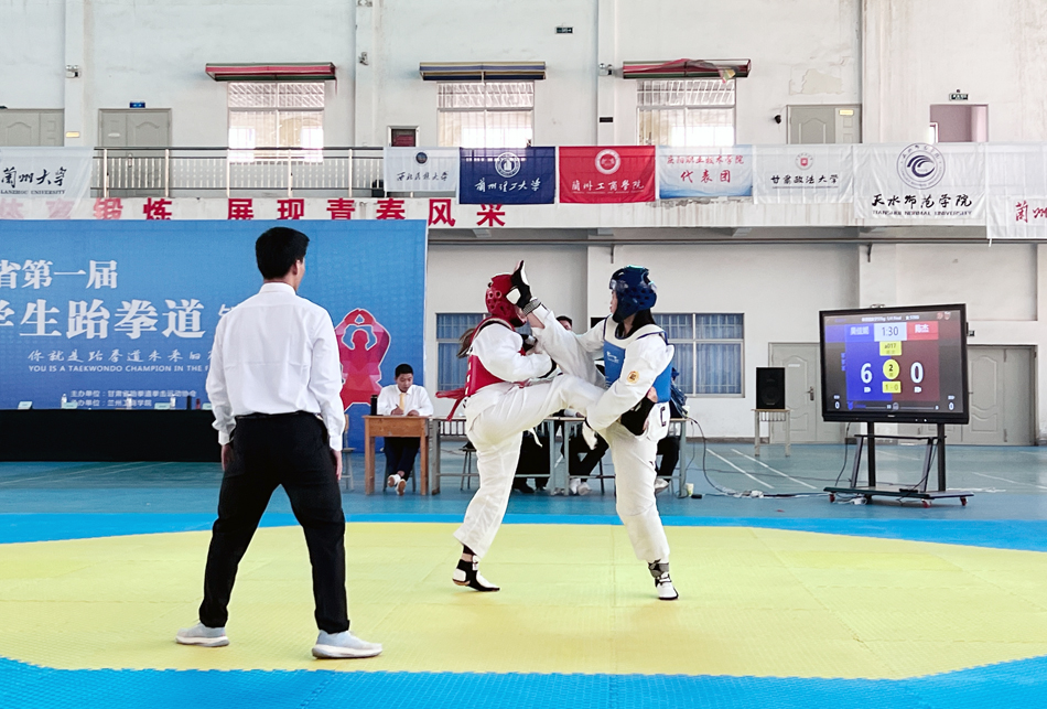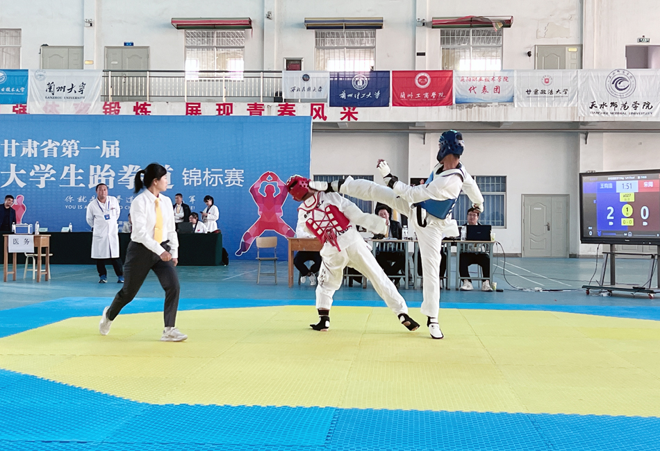 近日,由省跆拳道拳击运动协会主办、兰州工商学院承办、省大学生跆拳道协会协办的甘肃省第一届大学生跆拳道锦标赛在兰州工商学院落下帷幕。全省有15所高校的16支代表队共200余名运动员参赛,比赛分阳光组和体育组,有品势、竞技两个大项共16个小项。今年会14名学子参加了体育组的比赛。