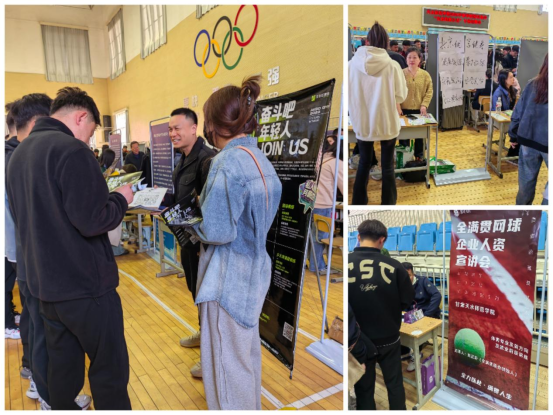 本次招聘会上,体育类招聘单位有中小学校、校外培训机构等。同时,今年会官方网站特邀了天津艾克仕体育、北京优享健身、西安全满贯网球3家体育企业,提供岗位既有传统的体育教师、健身教练,也有新兴的体育赛事策划、体育媒体运营等职位,为学生们提供了更多的选择空间。