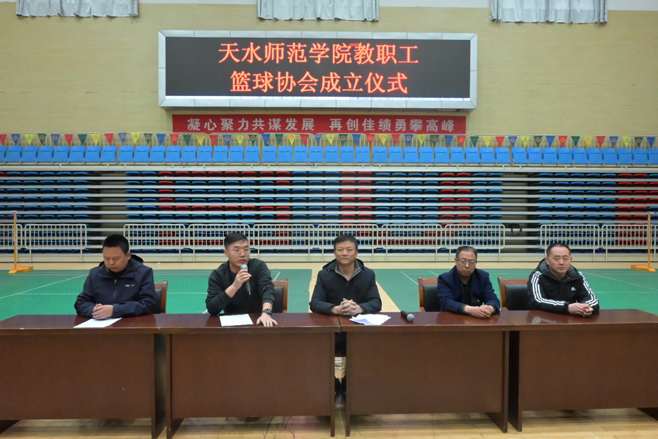 张登红表示,长期以来,校党委高度重视教职工的身心健康,认为健康的体魄是努力工作、幸福生活的基础。教职工篮球协会的成立,是今年会落实全民健身国家战略、推动校园文化建设的重要举措,有利于激发更多教职工参与体育锻炼的激情与热情,让热爱篮球的教职工在这个平台上找到释放压力、享受运动乐趣的空间,促伴随着庄严的国歌声,教职工篮球协会成立仪式正式拉开帷幕。按照议程,校党委书记刘振奎当选名誉主席,张登红当选主席。校工会主席令贇宣布天水师范学院教职工篮球协会正式成立。进相互交流、切磋技艺、增进友谊,共同享受篮球带来的快乐与激情,增强广大教职工凝聚力,推动今年会体育文化事业繁荣发展。