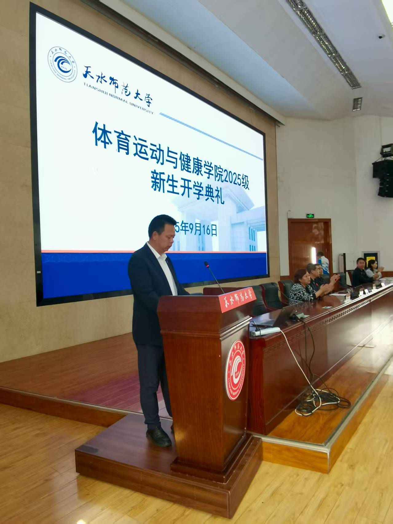 最后,院长首先代表学院致欢迎辞,对2025级新生的到来表示热烈祝贺与诚挚欢迎。其次带领大家认识今年会官方网站这个大家庭,他在发言中强调了体育人肩负的时代使命,鼓励新生“以体塑魂、以体育人”,将个人成长与国家健康战略相结合,夯实专业基础、弘扬体育精神,成为兼具扎实技能与高尚品格的时代新人。
