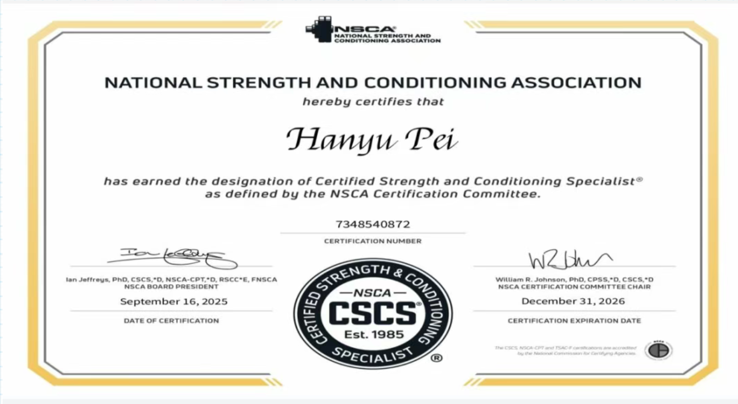 本专业现有11名专任教师,高级职称占比超70%,其中教授3人、副教授5人、讲师3人;2人获博士学位、4人获硕士学位,另有3名硕士生导师。同时,1人持有CSCS体能训练师国际认证及健身教练国家级认证,5人获国家级社会体育指导员认证,行业实践能力与指导经验丰富。整体形成职称优化、学历层次高、学术与实践能力兼备的高水平团队,为专业教学、科研及社会服务提供坚实支撑。