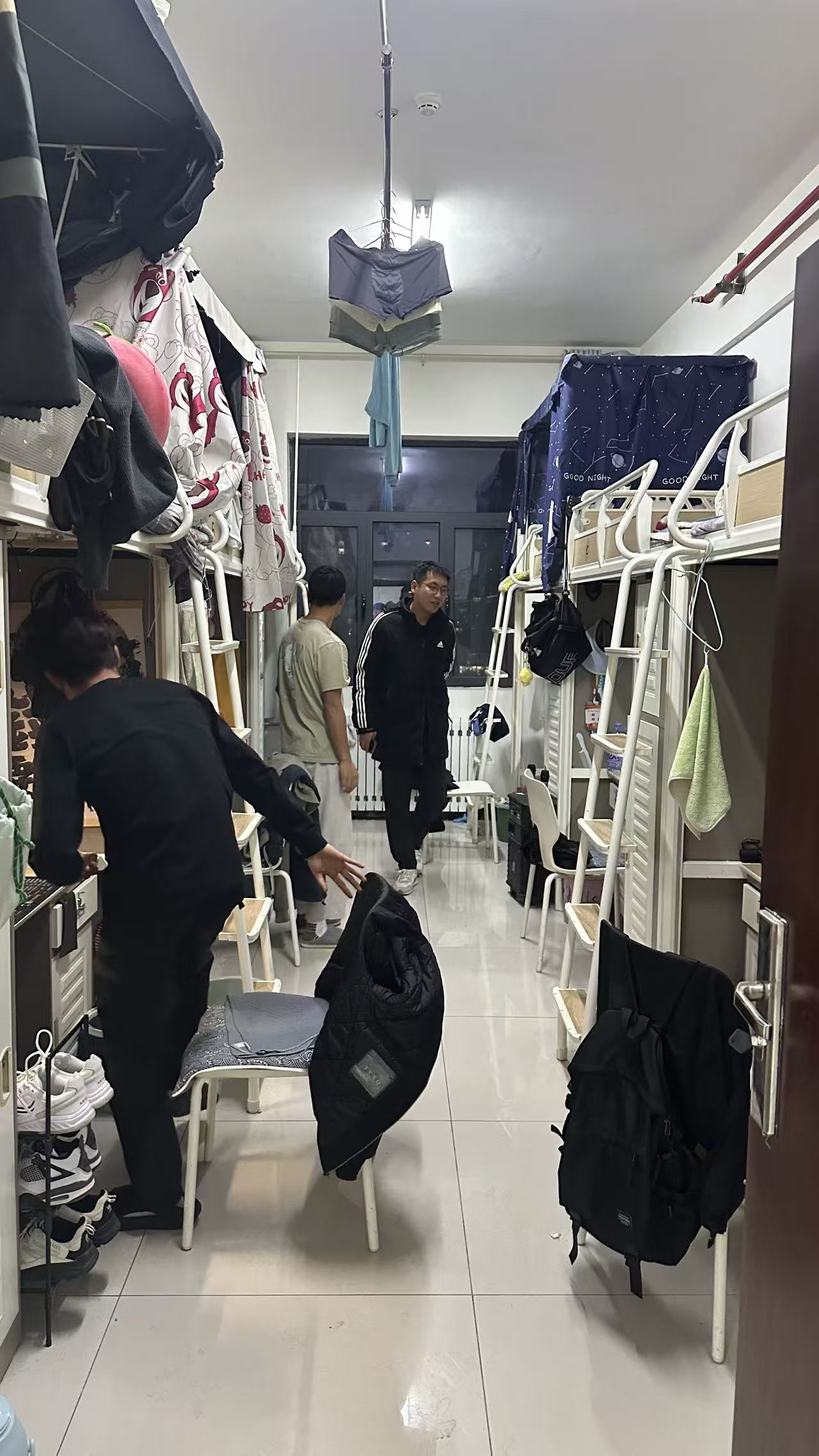当晚,学院进行全体学生宿舍检查,检查范围涵盖2022-2025所有学生宿舍,检查小组由学院领导、各年级辅导员、班主任、学生会权益纪检部学生组成,重点围绕宿舍违规电器、地面清洁、物品摆放、床铺整理、卫生间卫生、通风情况等方面,旨在营造整洁、舒适、安全的住宿环境,培养学生良好的生活习惯。多数宿舍窗户敞开,通风良好,空气清新,未发现违规电器等;部分学生能将自己的物品归纳好,但是仍然有宿舍地面清洁不彻底,存在食物残渣、纸屑等垃圾。