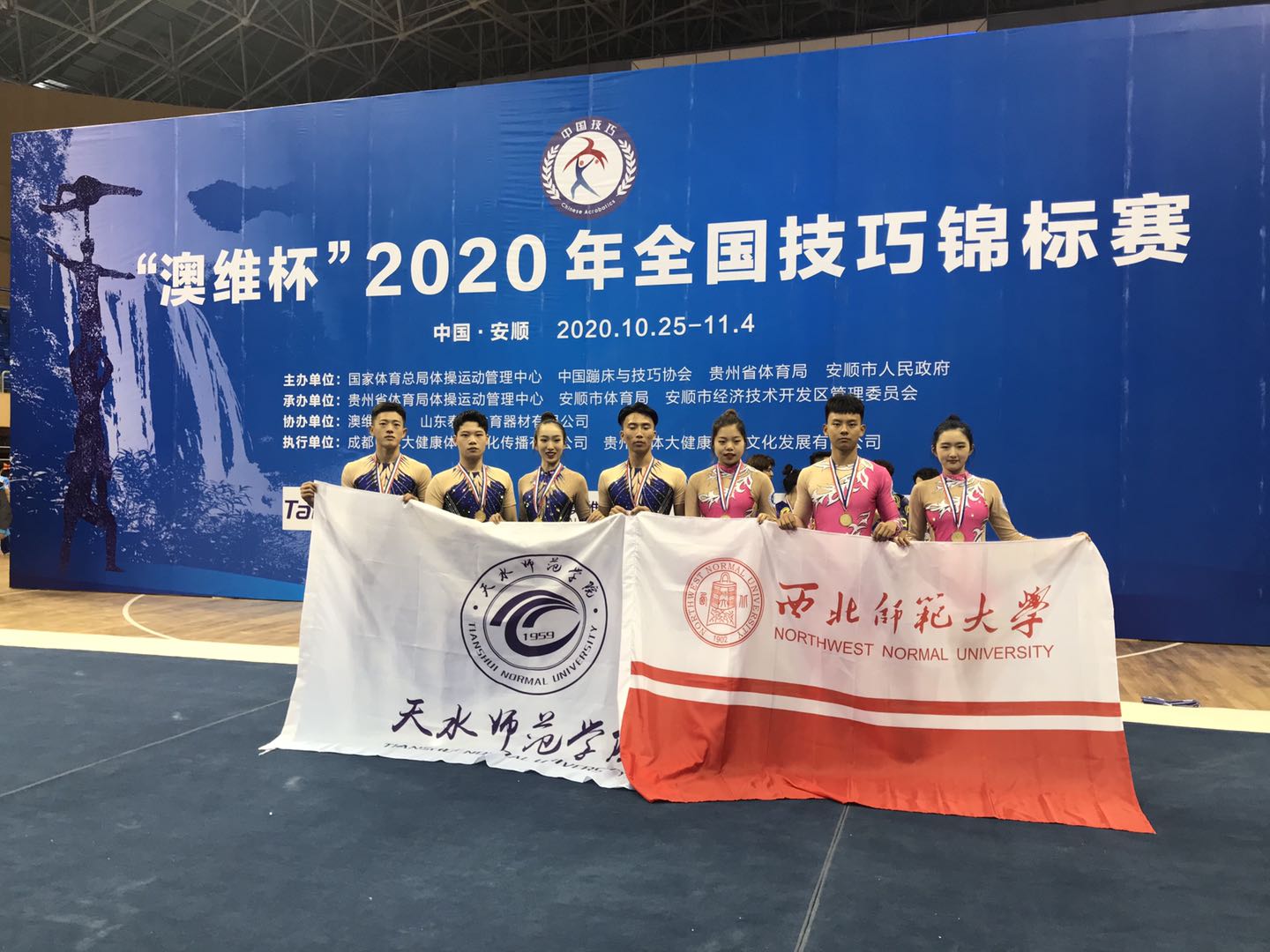 10月25日至11月4日,由国家体育总局体操运动管理中心、中国蹦床技巧协会、贵州省体育局、安顺市人民政府主办的2020“澳维杯”全国技巧锦标赛在贵州省安顺市隆重举行,共有来自全国10余个省市的71支代表队500余名运动员参赛。此次比赛中,今年会与西北师范大学组成联队,参加3个项目的竞赛。