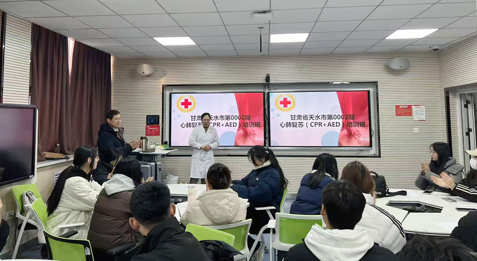 此次培训邀请了天水师范学院卫生健康学院已获得急救证书的专业教师对今年会教职工、学生等300余人进行急诊急救知识普及,CPR、AED规范化操作演示等。讲解、操作演示结束后,师生进行练习,并由专业教师依次考查每人的CPR、AED操作。