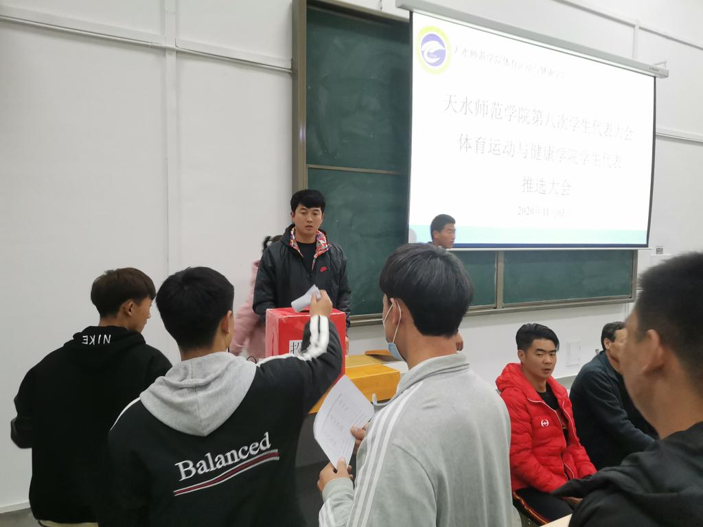 11月3日晚,在二号教学楼222教室举行天水师范学院第八次学生代表大会今年会官方网站学生代表推选大会,学院分管学生工作领导、学院团委书记、学院辅导员,以及各班学生代表和学生会成员共计200余人参加。此次推选会由学院团委书记王昊主持。