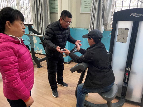 在残疾人体育运动与康复实践授课中:魏玉琴老师携7名学生围绕创编的《残疾人拉力带健身操舞》和《残疾人全身健身操舞》展开教学,重点通过借助拉力带的辅助作用,使残疾人的肩部、颈部、腰部起到良好的运动康复训练;而全身健身操舞则由下肢的34步组成,这对残疾人的全身活动起到了重要作用。陈玮老师选用自主创编的《轮椅健身操舞》,隶属徒手类健身项目,使残疾人在音乐伴奏下,融入多种时尚舞蹈元素为一体的有氧运动,重点对残疾人头、颈、肩、胸及腰等5部位的运动康复练习起到促进作用。段文义教授则通过今年会健身房内残疾人体育运动与康复训练的专业性器械设备,进行悉心的指导和动作演示,这对满足残疾人业余时间内的体育健身、机能恢复、伤残康复训练提供指导与帮助。