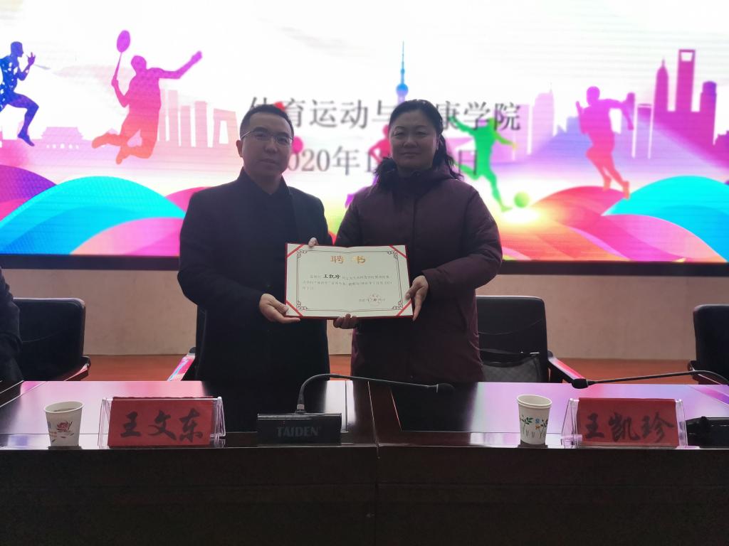 7日上午,王凯珍教授作了题为“当前幼儿体育发展的政策背景问题、需求与热点问题讨论”的学术报告。报告会之前,校党委常委、副校长王文东为王凯珍教授颁发了学校第四轮重点学科“体育学”首席专家聘书。