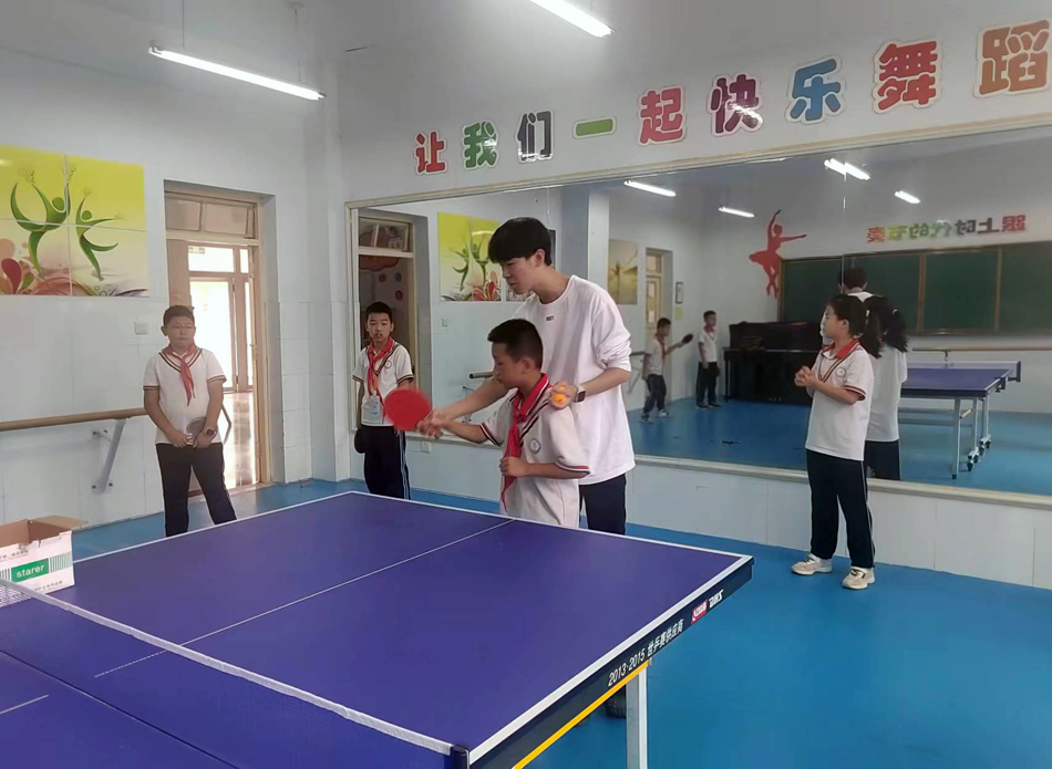 近日,今年会官方网站派出第一支小分队共8名学生对花牛中心学校大课间体育活动的篮球、足球、武术、韵律操、乒乓球和田径等六个项目给予专业技术指导。